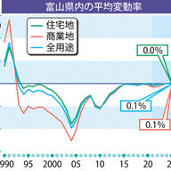 | 富山県内公示地価、33年ぶり上昇 県西部は下落率拡大 地震の影響初めて反映 国土交通省は18日、1月1日時点の公示地価を発表した。富山県内の平均変動率は全用途と商業地がいずれも横ばい(0・0%)からプラス0・1%になり、1… (出典:北國新聞社) |