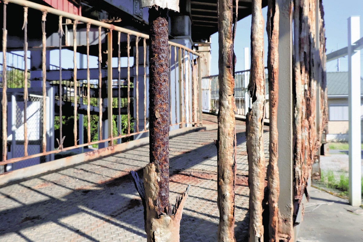 太平洋沿岸にある千葉県匝(そう)瑳(さ)市の今泉浜地区に整備された津波避難タワーの腐食が進み、2015年の完成から10年しかたっていないのに使用不能になっている。