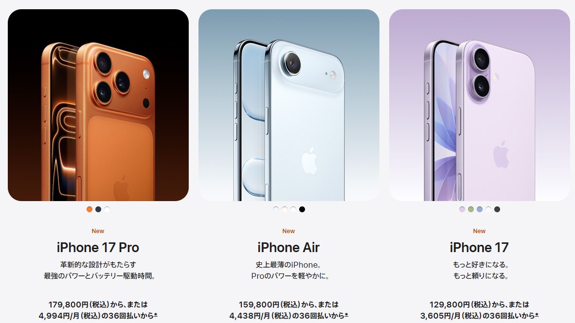 今回の「iPhone 17」シリーズには、薄型軽量を追求した「iPhone Air」が新たに追加され、標準モデルの「iPhone 17」、高性能モデルの「iPhone 17 Pro」「iPhone 17 Pro MAX」と合わせて4つのモデルで展開される。